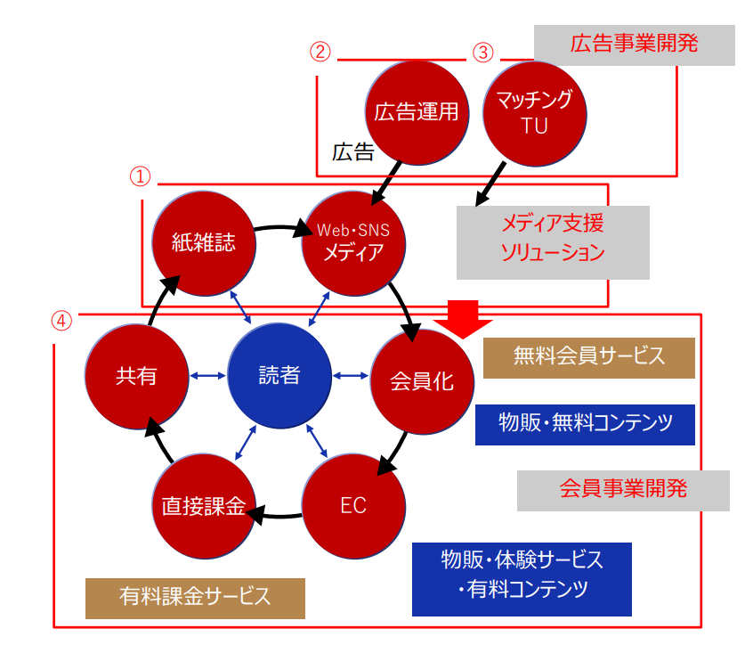 DNPでは雑誌メディアの新たな可能性として「マッチング広告」や「タイアップ広告」「運用型広告」など出版社のウェブメディアの収益性向上、「読者起点の会員制デジタルサービスの構築」の支援を軸に、出版社のコンテンツを活かした多様なコミュニケーション体験を企業や生活者に提供しています。