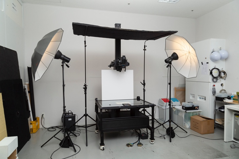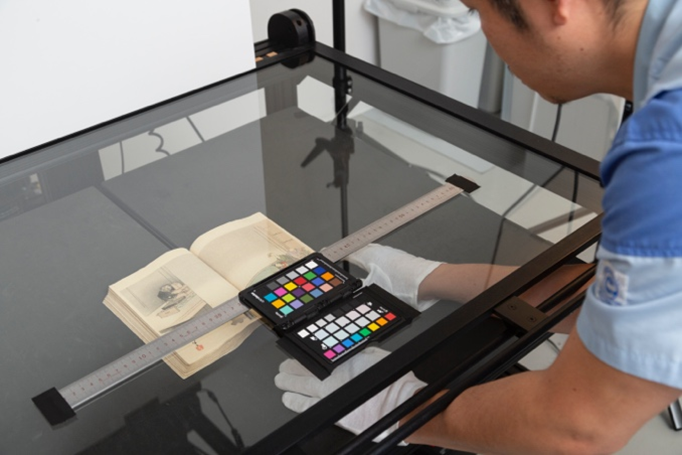 対象物を非破壊で扱うため、スキャンは「高性能カメラ撮影」で行います。スキャン台には「Phase One(フェーズワン)」という高性能カメラを搭載。希少な対象の場合、マスクや手袋を着用しながら作業を行います。スキャンする部屋は、社員の中でも登録者しか入れないようになっているほか、必ず2人以上で確認しながら作業を行うことで、高いセキュリティを維持しています。