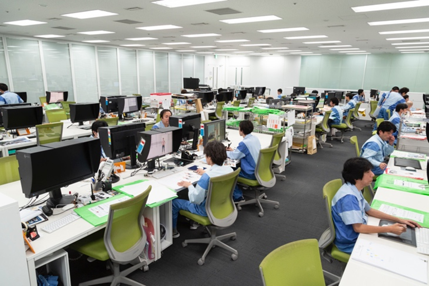 第三回目の対象物は「大判設計図」をデジタル化する現場に潜入。大きいサイズに対応するだけで無く、図面や文字を鮮明にするための工夫もしています。 |