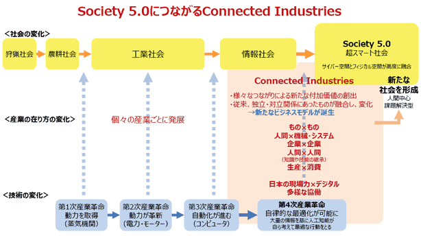 また、日本にもインダストリー4.0のように産業の改革を目指すコンセプトとして、2017年に経済産業省が発表した「Connected Industries(コネクテッド・インダストリーズ)」があります。Connected Industriesは、「様々なつながりにより新たな付加価値が創出される産業社会」を目指し、モノとモノがつながるIoTや人と機械の協働などがうたわれています。