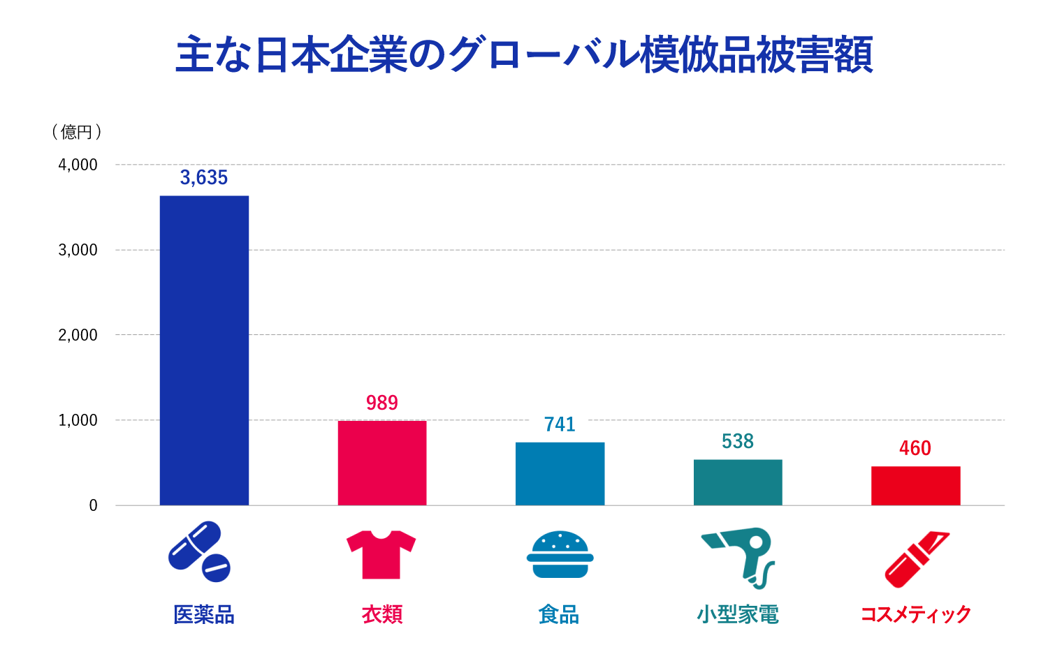 具体的には、飲食料品、化粧品・トイレタリー、カバン・衣類、医療器具、小型家電などが「模倣されやすい産業」として特定されています。