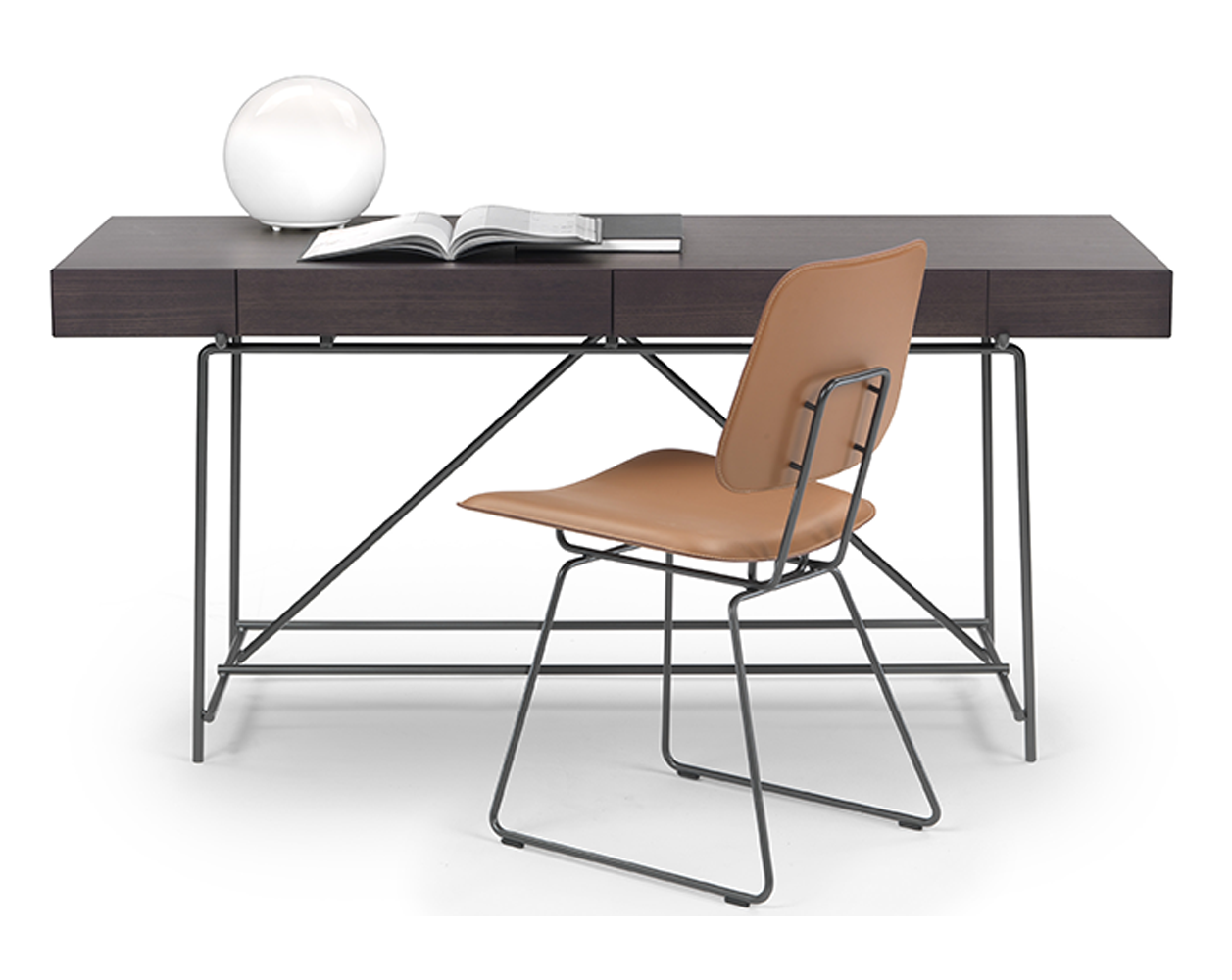 同じくPatricia UrquiolaデザインのLunatと組み合わせ、自宅のワークスペースやホテルの客室にも適しています。直線の脚に対し、有機的な月の形をしたウォールナットの天板が組み合わされています。Lunatは少し小さめのデザインのため、あらゆるスペースにフィットします。テレワークが普及した現代のトレンドに応えたデザインです。