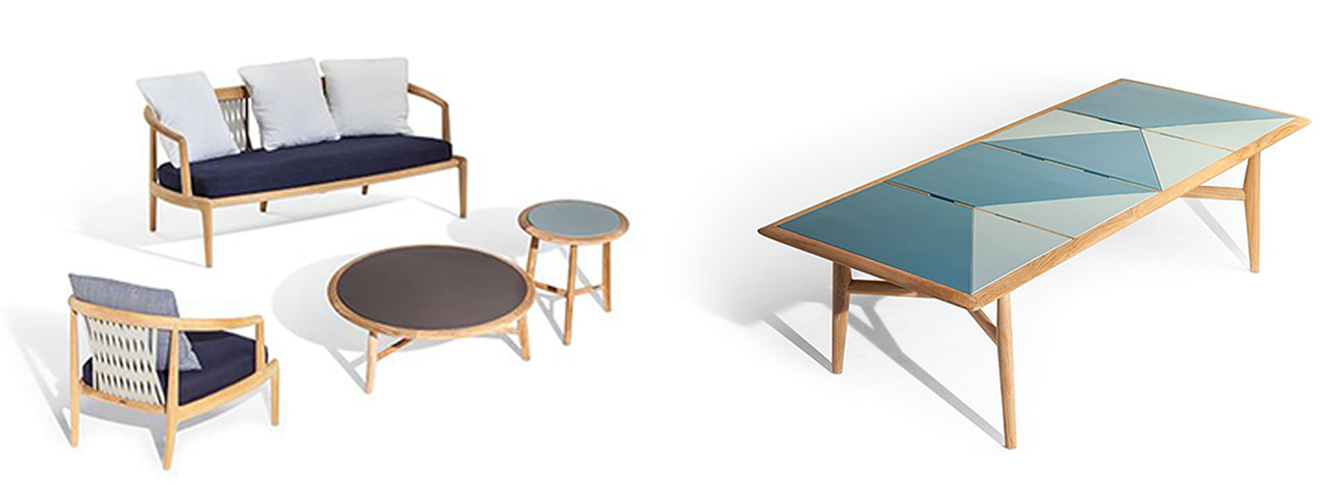 スペイン生まれのDavid Lopez Quincoces氏がデザインしたアウトドアコレクションKasbahは、モロッコに拠点を置くクライアントの住宅向け生まれたデザインです。このプロジェクトは2つの特徴があり、1つはLiving Divaniがこれまで使用していなかった新しい木材を使うということで、認証を受け環境への負荷がないビルマ産のチークを使用しています。2つ目は優れたモジュールによる柔軟性です。Kasbah Low Tableも同じくビルマ産のチークを使い、美しいチークの表情を組み合わせたローテーブルです。