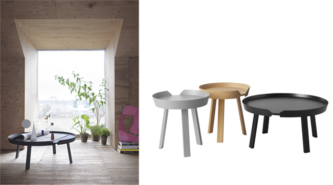 “Around Coffee Table”も同じくThomas Bentzen氏によってデザインされたコーヒーテーブルです。特徴は淵に沿うように走るベニヤのフレームにあります。このコーヒーテーブルにおけるベニヤのアイディアは、” Cover Armchair”にも活かされています。スカンジナビアデザインの伝統を参考にしながら作られた本作は、どこか日本のお盆やわっぱにも通じる、手工芸的な温かみを感じられます。こちらも水性ラッカーが使用されています。