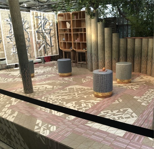Boundlessな空間やナチュラルテイストが求められる中で、アクセントカラーも自然に近い形での表現が求められ、そのような空間に大理石のグリーンやレッドが用いられたと考察しています。またサステナビリティの観点で、2018年辺りからミラノで出現した新しいテラゾーのトレンドは、世界中に拡大しています。今年もテラゾーをイメージしたような新しい組み合わせのマテリアルが出現していました。