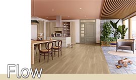 2023年のFlowは「Nostalgic Breeze」をスタイルのテーマにしました。屋外と室内の境界線を越え、ダイナミックに自然や植物と共存できる暮らしをイメージし、さわやかな風が流れる開放的な空間です。さらに、どこか懐かしさを感じるようなカラー・マテリアルをコーディネートすることで ”ほっとする安心感” も融合させています。Flowのペルソナについては、こちら(DNP 5 Styles 2023 | コラム・記事 | ソリューション/製品・サービス | DNP 大日本印刷)をご覧ください。(國東)