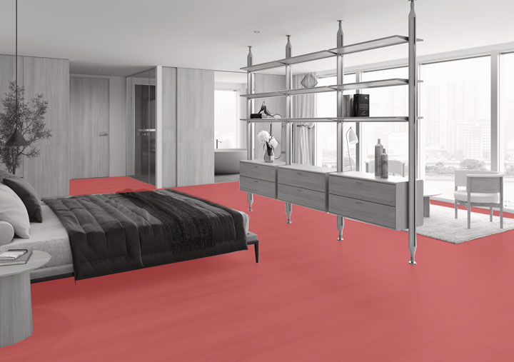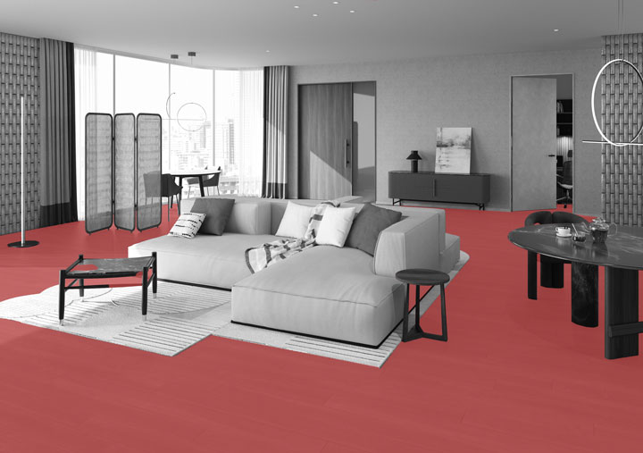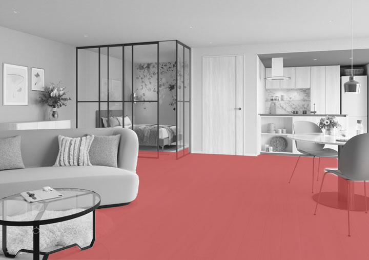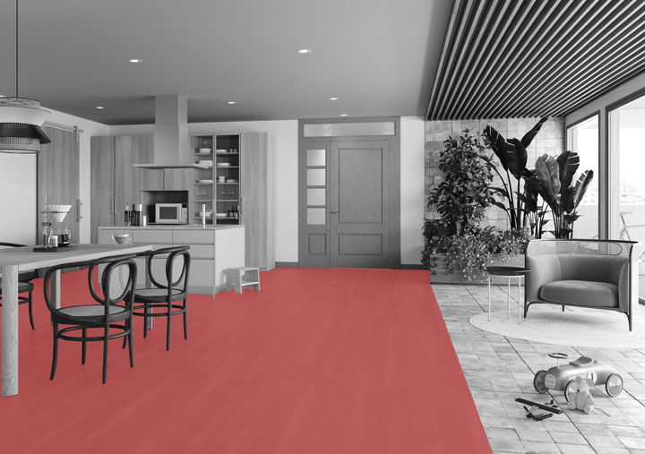 床はEBFW-1254 チェスナット柄 を選びました。クラフト感のあるシートデザインで、個性的な空間からナチュラル、エレガントなテイストまで幅広いインテリアに対応できる色柄です。今回は、cc-tapisの個性的なラグPlein Cadreと組み合わせました。 |
