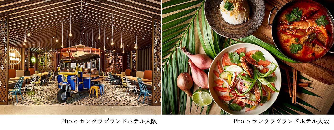 タイの通りに並ぶ屋台からインスピレーションを得たタイ料理のレストラン「スアンブア」。ホテルの2階入り口から入ったすぐのところにあるレストランです。トゥクトゥクが出迎えてくれ、センタラグランドホテル大阪のシグネチャー的な存在になっています。