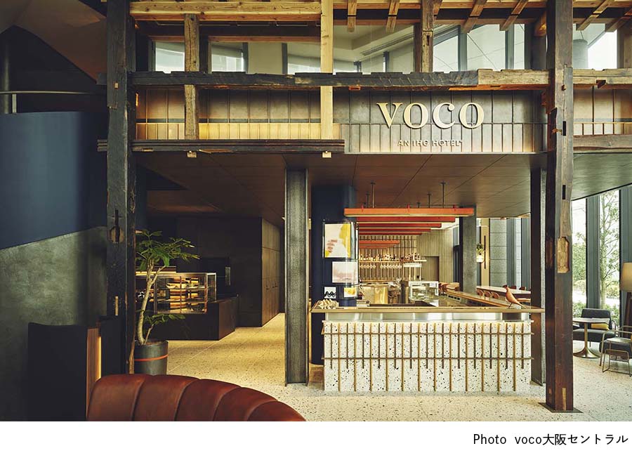 IHGホテルズ&リゾーツのプレミアムホテルブランド「voco」の日本初進出となるvoco大阪セントラルが2023年5月開業しました。古材を再利用したソーシャルスペース(ロビー、レストラン、カフェ&バー)の斬新なデザイン空間と、自然体で過ごす「おもいがけない特別」な世界観を提供するプレミアムホテルです。vocoという名称は、ラテン語で「招待する」「呼び集める」を意味し、まるで慣れ親しんだ場所のような居心地の良い滞在のなかに「おもいがけない特別」な体験を提供します。また、この場所は商人が集まり、市場で賑わう庶民の街として栄えてきた歴史があり、ホテルを起点に新たな人の流れや文化を創出し、街に彩りを添えるような存在となることをめざしています。インテリアデザインは、NAO Taniyama & Associatesが手掛けています。