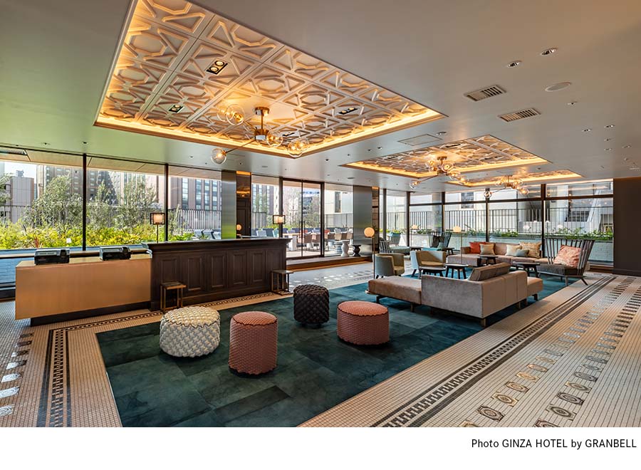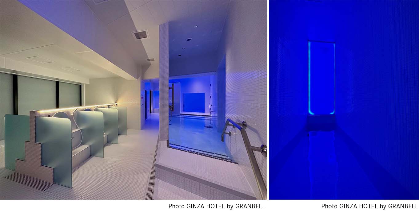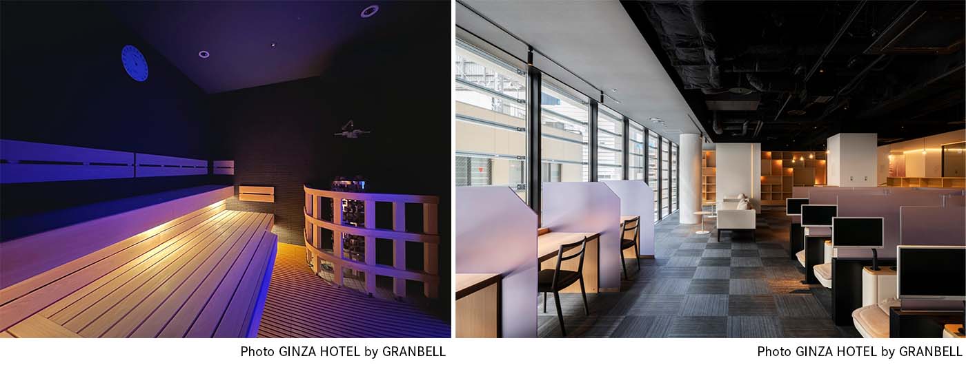 「FUN to STAY-その街に合わせたホテルステイを演出-」をコンセプトにホテルを展開しているグランベルホテルグループは、複合施設「GRANBELL SQUARE」の5~9階にグループ初となるプレミアムタイプのデザイナーズホテルGINZA HOTEL by GRANBELLを開業しました。クラシカルな装いが叶えるラグジュアリーステイで銀座の街に相応しい洗練された時間を過ごせる、コリドー街の新しいランドマークホテルです。4階にはスパ施設「SPA&SAUNA コリドーの湯」があり、オートロウリュサウナやスチームサウナ、外気浴場やラウンジスペースなどを完備しています。ホテルの設計は株式会社プランテック、コリドーの湯の設計は今井健太郎氏が手掛けています。