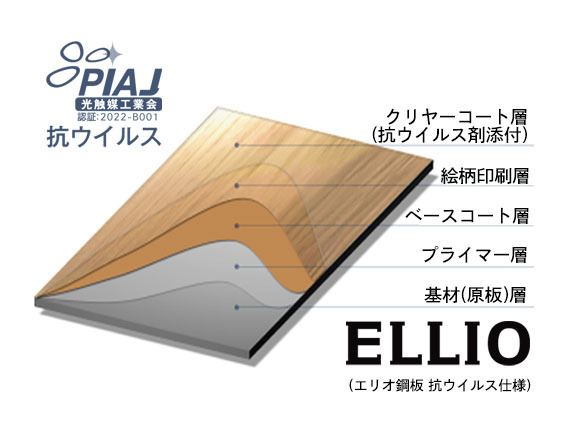 エリオ鋼板(不燃・焼付化粧鋼板) 抗ウイルス仕様