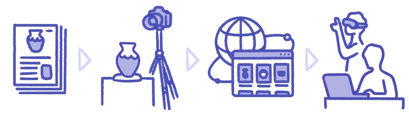 さまざまな形態の情報資源をデジタル化し、それらを整理・保存して、インターネットなどを通じて提供するデジタルアーカイブ。デジタルアーカイブを新たに立ち上げようとする時、どのような流れで何をするべきなのでしょうか。ここでは、法人のお客様(自治体・企業などの団体)に向けて、デジタルアーカイブの構築の流れを、調査設計、デジタル化、システム構築、公開・利活用の大きく4つの段階に分けて説明します。