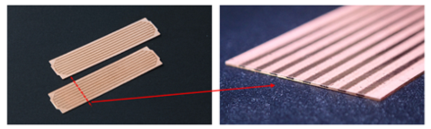 ベイパーチャンバーは、ヒートパイプとまったく同じ原理で動作しますが、パイプ状ではなく、フィルム状のケーブルや薄い金属のベルトのような見た目をしています。ベイパーチャンバーは、極めて精密に形成された溝と毛細管構造(ウィック)のある薄い金属板を貼り合わせた構造をしています。ヒートパイプは構造上、曲げたり薄くしたりすると放熱効率が落ちますが、ベイパーチャンバーは厚みが0.25~0.2mmと薄いものも作られています。