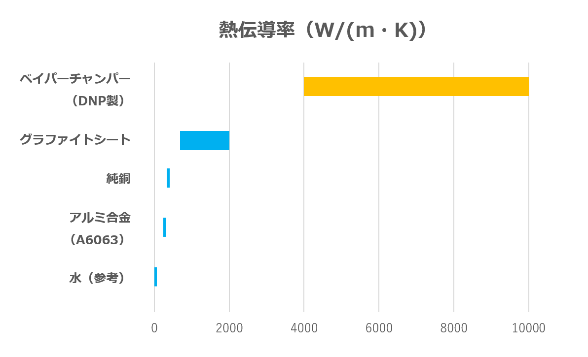 ・ヒートパイプやベイパーチャンバーと比較すると、熱伝導性が低い。