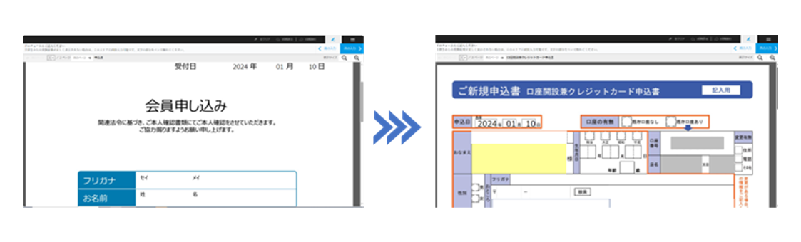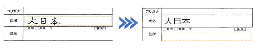 紙帳票の良いところを反映した電子化のポイント例:記入の手軽さ(キーボード入力ではなく、手書き記入からテキスト化できる)