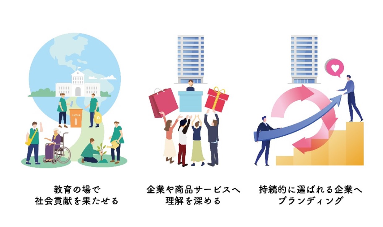 | 教育CSRのポイント | 子どもたちに事業活動を通じてライフプランについて考える機会を提供することで、自社ブランディング、キャリア教育支援の実践につながります。 |