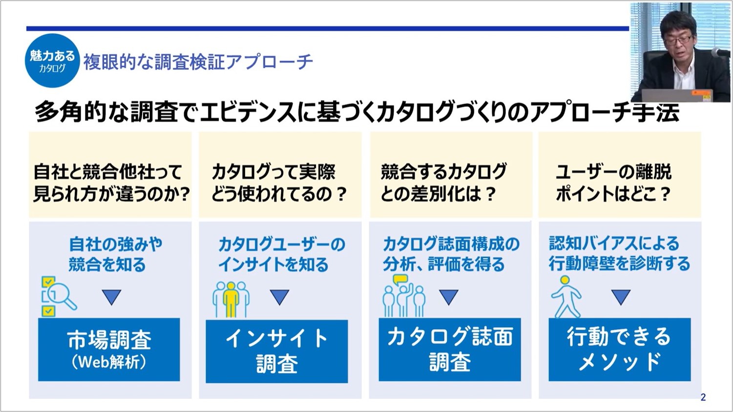 「魅力あるカタログ」づくりでは、経験や勘に頼らない、デジタルを活用した複眼的な調査を実施し検証を重ねることで顧客体験価値を上げることが可能になってきました。