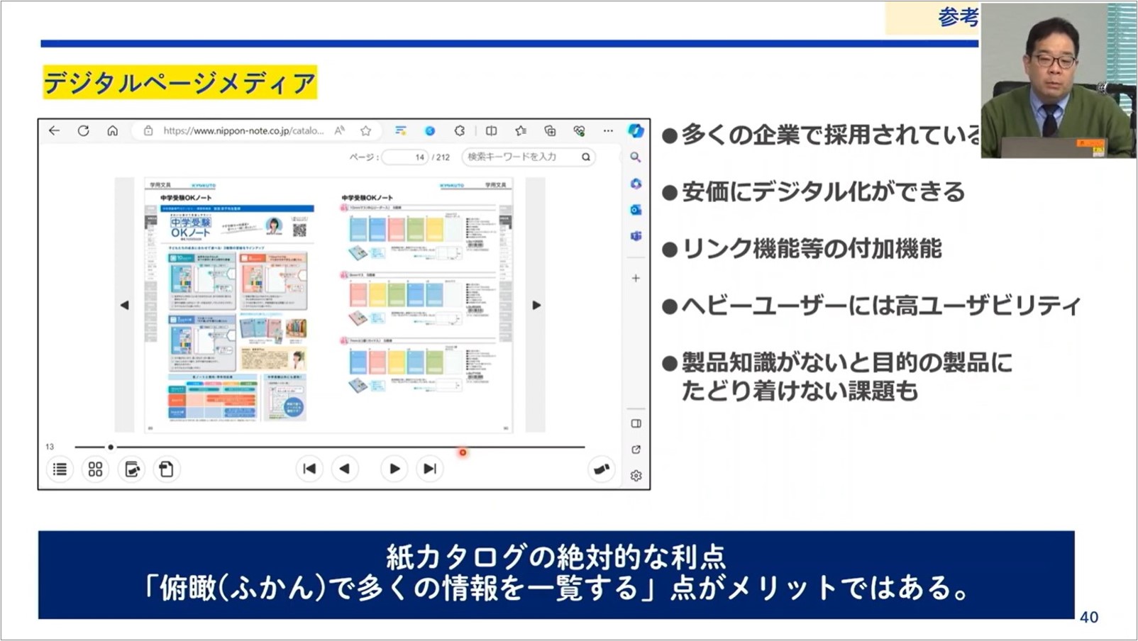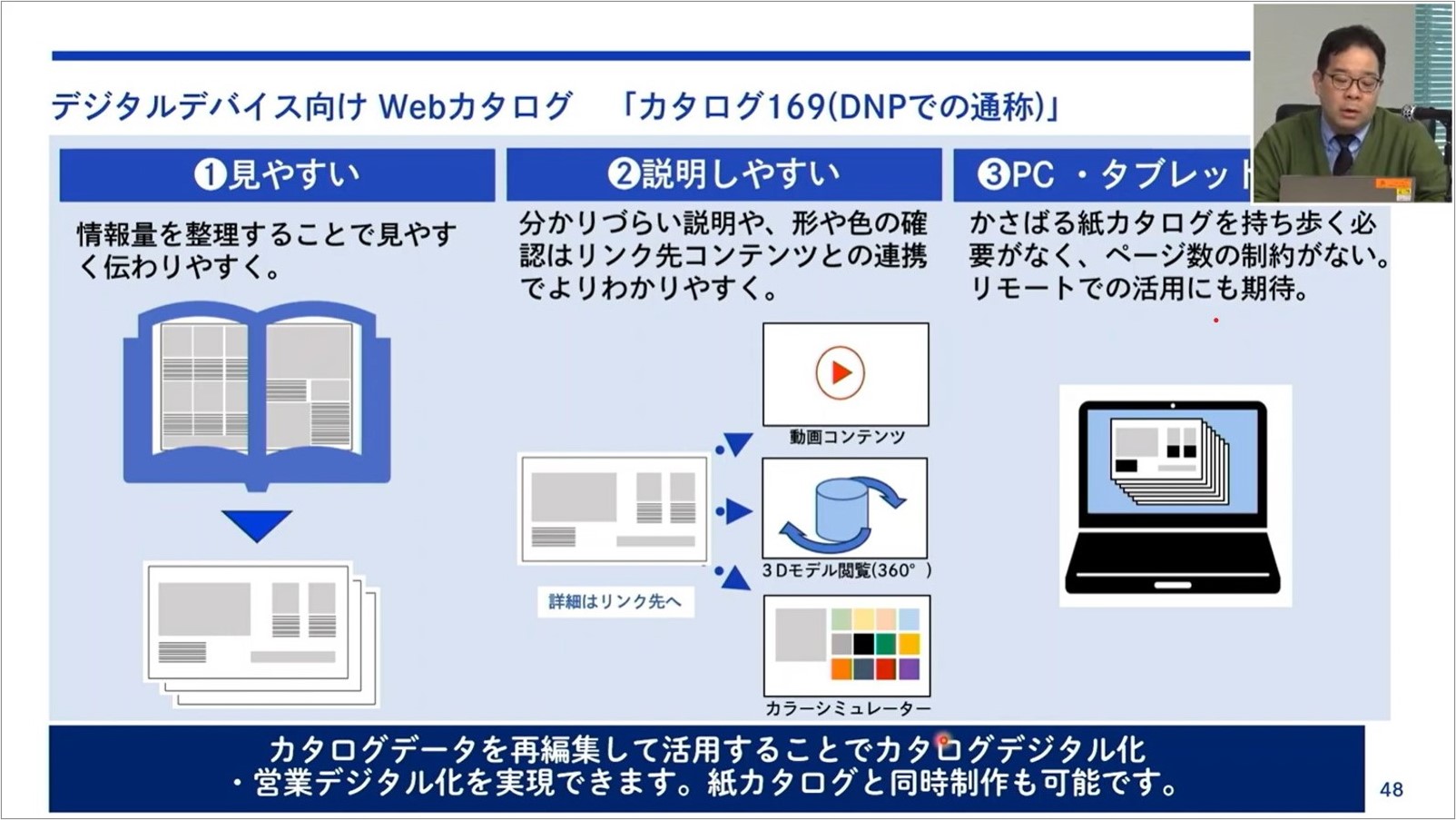 セミナーでは、DNPに限らず他社動向も含めて、多様に発展している「カタログのデジタル化」のトレンドを数多く紹介しました。以下はその抜粋です。
