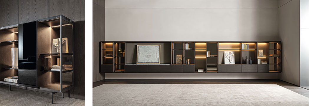 ウォールシェルフ、カップボード、そしてTVユニット。LOGOSはさまざまな姿に形を変え、インテリアに無限の可能性を提供するユニットシステムです。コンパートメントや照明、形状はもちろんのこと、多彩に取り揃えられた木、ラッカー、ガラス、金属といった素材、そしてそれらの仕上げがパーソナライゼーションの要求に応え、家具の枠組みを超えて空間づくりの重要な役割を担います。