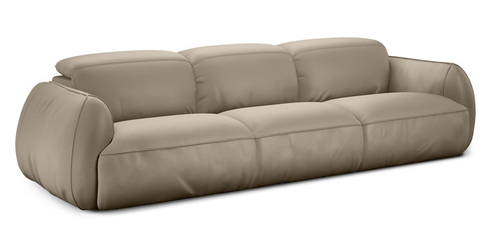 画像左はKarim RashidデザインのMemoria sofa。有機的な曲線が特徴で、プーリア地方の緩やかな丘陵地帯や、海の流れを表現しています。画像右はNatuzzi Italiaが人間工学的視点で開発したMindful sofaです。背もたれが自動で可動し、呼吸しやすい体制と適切な血流を促し、最適なリラックス状態へと誘います。