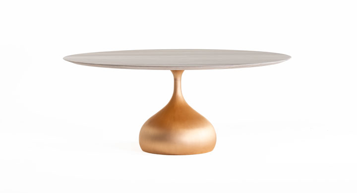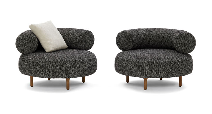 A WAY OF LIVINGをテーマにさまざまな国のカルチャーを取り入れ、リビングやダイニングなどそれぞれのシーンが想起しやすい空間がミラノのショールームでお披露目されました。画像左はElisa Ossinoデザインの新作Honorè Armchairです。曲線を描いたエレガントな佇まいで、包み込まれるような形状のバックレストが特徴です。画像右はTIME & STYLE ēditionの新作Raindrop Casting Bronze Tableです。富山県高岡市の歴史ある鋳造技術と職人による手仕事の融合から生まれた新製品で、ブロンズ製の脚は雨粒が落ちる様を表現しています。ブロンズというマテリアルの重厚感と、雨粒の有機的なフォルムがバランスよく共存したデザインです。天板は北海道産のナラ材を使用しています。