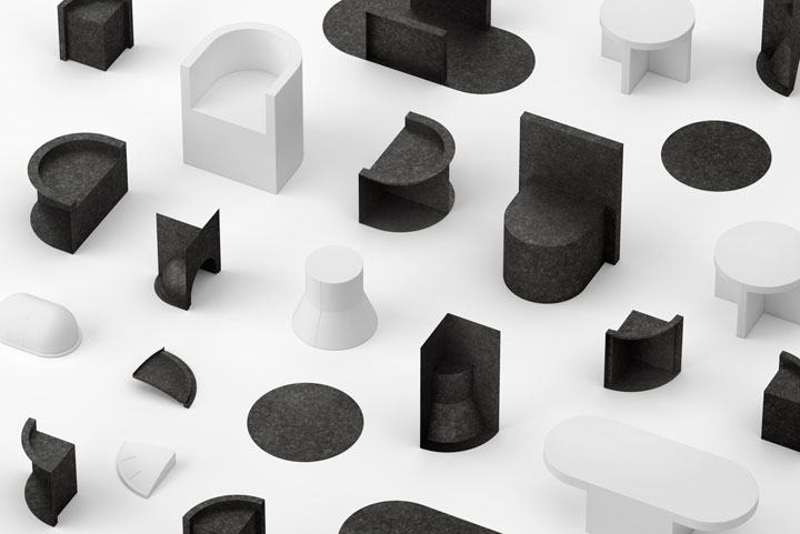 light and shade は「光と影」の関係を、プロダクトにおける「成型物と金型」の関係に置き換えることで、互いの補完関係を表現したコレクションです。本来、人目に触れることのない金型を最終製品の一部(もしくはそのもの)とすることで、デザインプロセスからアウトプットまでの流れを美しく完結させていました。”金型”を金属素地活かしのブラック、”成型物”をしっとりとマットなホワイトで仕上げることで質感にも色合いにもコントラストが生まれ、より「光と影」の関係性を強く感じるコレクションとなっていました。