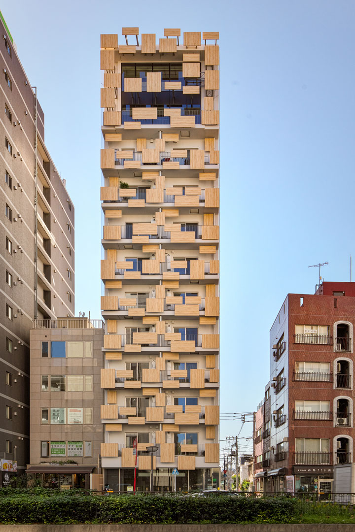 隈研吾氏がデザインを監修したこの建物は、木目を活かした特徴的な外観で、都会の風景のなかでひと際目を引く存在となっています。