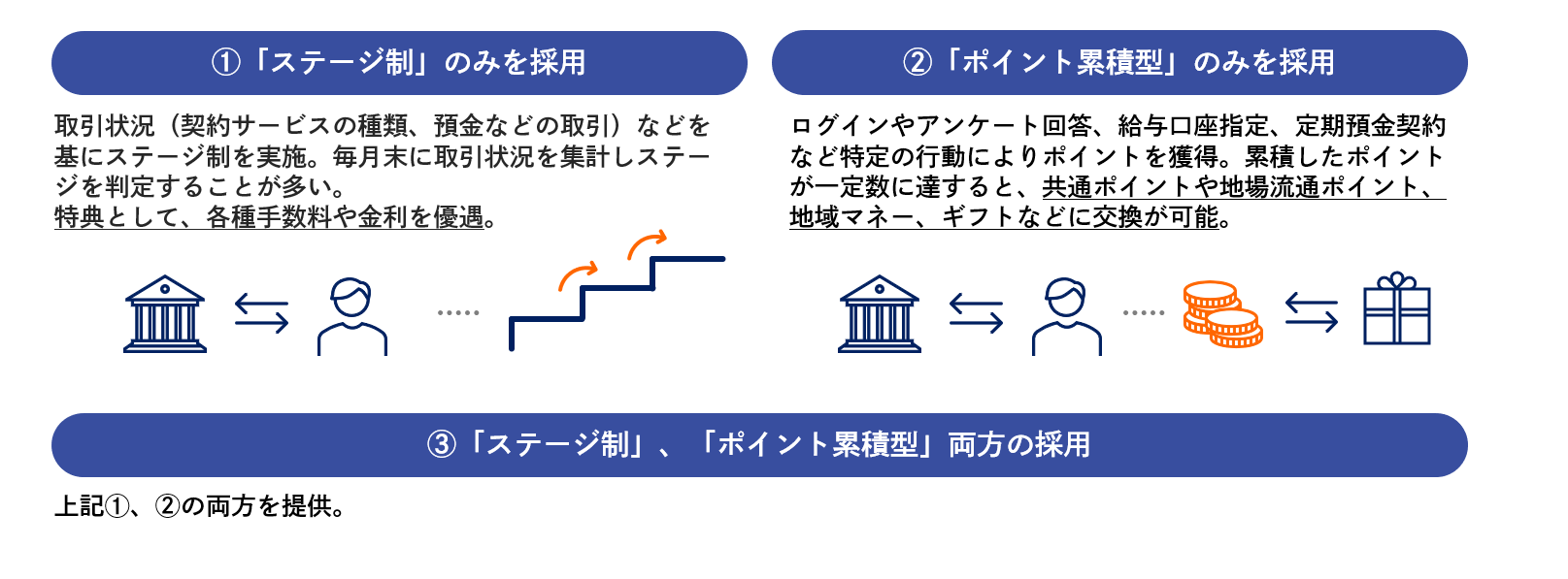 取引状況(契約サービスの種類、預金などの取引)などをもとにステージ制を実施。