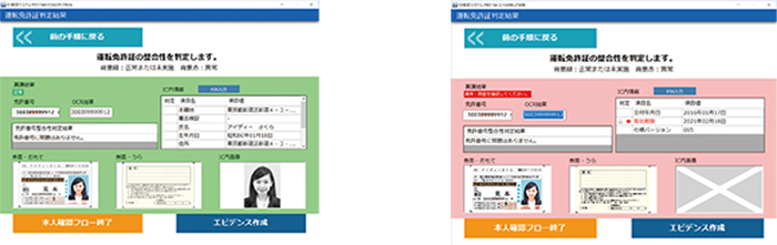 ※運転免許証/運転経歴証明書は、DNP独自技術が搭載されており、運転免許証の暗証番号(PIN)入力なしで、券面画像データにより偽造でないかを自動でチェック(真贋判定を補助)し、有効性/真正性を確認できる自動判定機能の対象となる本人確認書類です。
