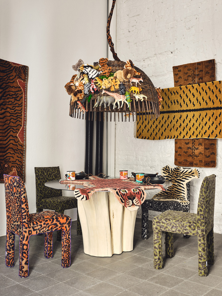 2024年はPaola NavoneによるGhostの記念すべき20周年。その名の通りお化けのようなゆったりとしたカバーをすっぽりとかぶったこのシーティングコレクションは、Gervasoniを語る上で欠かせない代表作の一つです。今年はこのシリーズの新作として、4本の脚にフィットするタイプのカバーを採用したチェアが発表され、古代ローマのドムスをイメージしたGervasoniのSalone del Mobile会場(画像中央)で展示されました。さらに、ミラノ市内のGervasoniフラッグシップストアでは、Ghost Partyと称しメタリック生地やアニマル柄(画像右)など、遊び心にあふれた特別仕様のGhostが展示されるとともに、来場者によるInstagramコンテストが開催され、伝統を大切にしながらも常に革新的であり続けるGervasoniらしい提案が人々を楽しませていました。