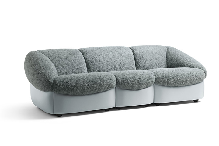 ParkaソファコレクションはDRAGA & AURELによるデザイン。 1990年代を象徴するストリートウェアであるパーカと、デザイナーの多分野にわたるバックグランドからインスピレーションを得ており、快適さとリラックスを テーマにしています。 このソファはモデュール式で、空間や用途にあわせて組み合わせが可能です。張地はPoltrona Frauの幅広いラインナップから選ぶことができ、ソファの上部と下部で素材を変えることも可能。まさにファッションのように、さまざまな組み 合わせを楽しめるデザインです。