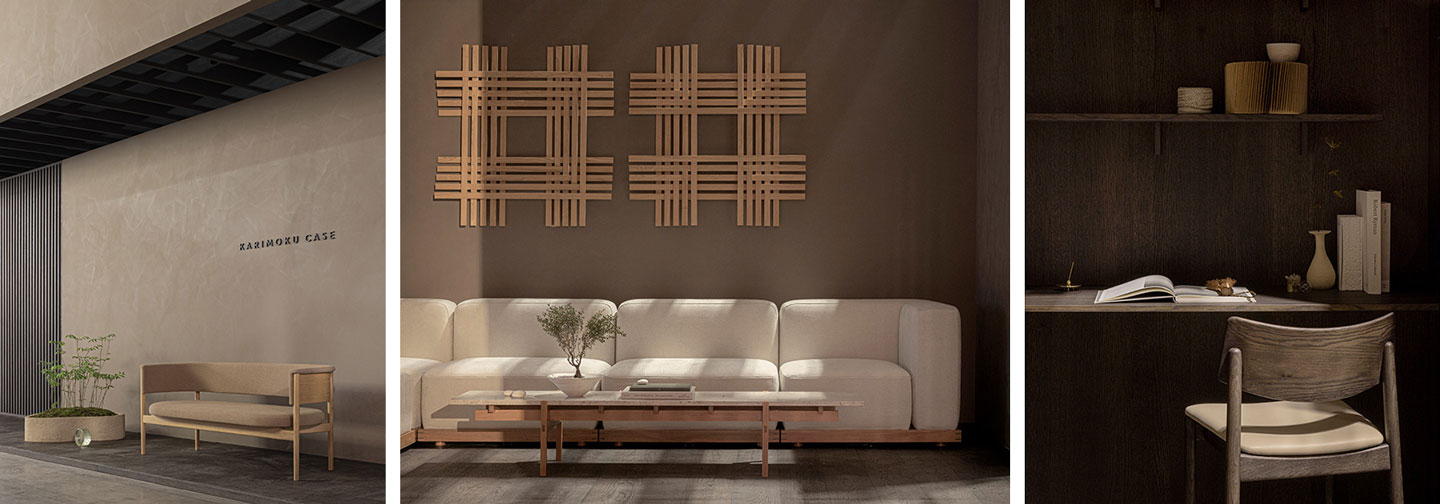 下の画像はRho Fiera会場の様子から。「自然なコントラスト」をテーマに建築家の芦沢啓治氏とブランドのデザインディレクターを務めるNorm Architectsが手掛けています。塗装色「スモークドオーク」を基調とした空間は「禅」にも通じる落ち着いた雰囲気となっており、展示されている家具は、どれも柔らかなコントラストを感じさせる佇まいとなっていました。まさに「空間から考える家具」を体現した家具は、6つに区切られた展示空間の中にも一貫したスタイルで日本の伝統とモノづくりに込めた思いを表現しており、モダンで落ち着いた「Karimoku Case」の神髄に触れることのできる展示となっていました。