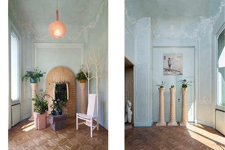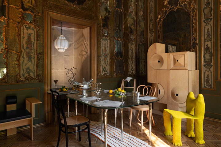 今年のデザインウィークの中でも注目度が高かったインスタレーションの一つ、L‘Appartamento by Artemest。Artemestは2015年に設立されたイタリアのインテリア製品を扱うオンラインショップです。今年は1900年代に建てられた歴史的建造物Residenza Vignaleにて、L’Appartamentoの第2章を発表。Elicyon、GACHOT、Rottet Studio、Studio Meshary AlNassar、Tamara FeldmanDesign、VSHD Designがキュレーションし、厳選された作品が展示されました。展示されていた家具や小物は、Artemestのオンラインサイトから購入することが可能です。画像左のElicyonによるThe Cocktail Room は、イギリスのマナーハウスからインスピレーションを得ています。画像右はVSHD DesignによるThe Dining Room。モダニストとバロックの美学の間の対話をテーマに、重厚な装飾が施されたバロック様式の壁と天井の空間で、洗練されたすっきりとしたモダンな家具が組み合わされ、そのコントラストを楽しむことができます。