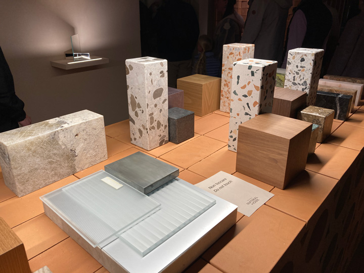 ファブリックはインテリアのテーマカラーやアクセントカラーとして使われる場合が多く、前述の通りホワイトからベージュのゾーンが今年の頻出カラーとして挙げられます。一見するとカジュアルで少し地味にも見えるカラーを、世界が注目する場でハイブランドが積極的に取り入れる動きは、新しい空間作りの流れとして捉えることができました。次いで多かったのがグリーンやブルー。アウトドア家具や植栽とも相性が良く、特にグリーン系の大理石は今年の頻出マテリアルのひとつと言えそうです。さらにそのグリーンと合わせて登場していたのがオレンジやブラウン。アクセントカラーとしてさまざまなところで使われていた彩度の高いオレンジやブラウンは、今年の注目カラーと言えそうです。
