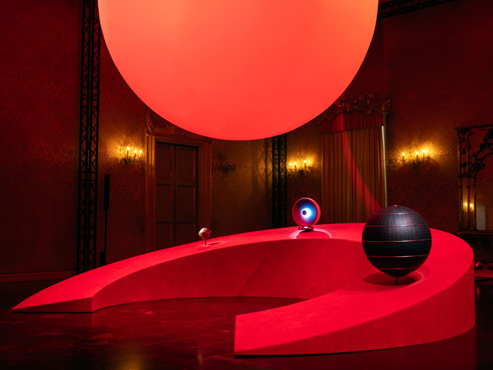 画像左はSpace Cabinet series。惑星や宇宙探検のような空間的広がりのある事象からインスピレーションを得たアイテムで、サイズによってジュエルミニバッグ、ミニキャビネット、バランスボールとして機能します。画像右はMind Teaserはゲームからインスピレーションを得たデザインで、5つの異なる要素の組み合わせ次第で、スツールやコーヒーテーブル、アームチェアに変化します。