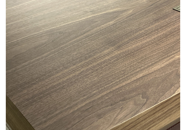 木質のメインはオーク、ウォールナット、アウトドア家具ではチークが使われていました。いずれも木質本来の色を活かしたナチュラルでドライな仕上げが多く、中でもウォールナットは明るくカジュアル印象なものが増えてきたように感じます。また一方でオープンポア仕上げと言われる塗り潰し表現も多く見られ、これは厚塗り塗装をする事で見た目の良くない材料も有効活用できるため、サステナブルな取り組みとして紹介されていました。木質以外の金属や樹脂系の素材でも同じように均質な塗装が至る所で見られ、空間全体がソリッド感のある質感にまとまっています。つまり異なる素材の家具でも表面を似たような仕上げにすることにより、違和感なくひとつの空間に共存させることができるということです。これはユーザーが好みの家具を自由に選べることに繋がっており、今年のミラノ全体を通して各ブランドが個性をアピールするだけでなく、ユーザー視点に寄り添った提案が増えてきていると感じました。
