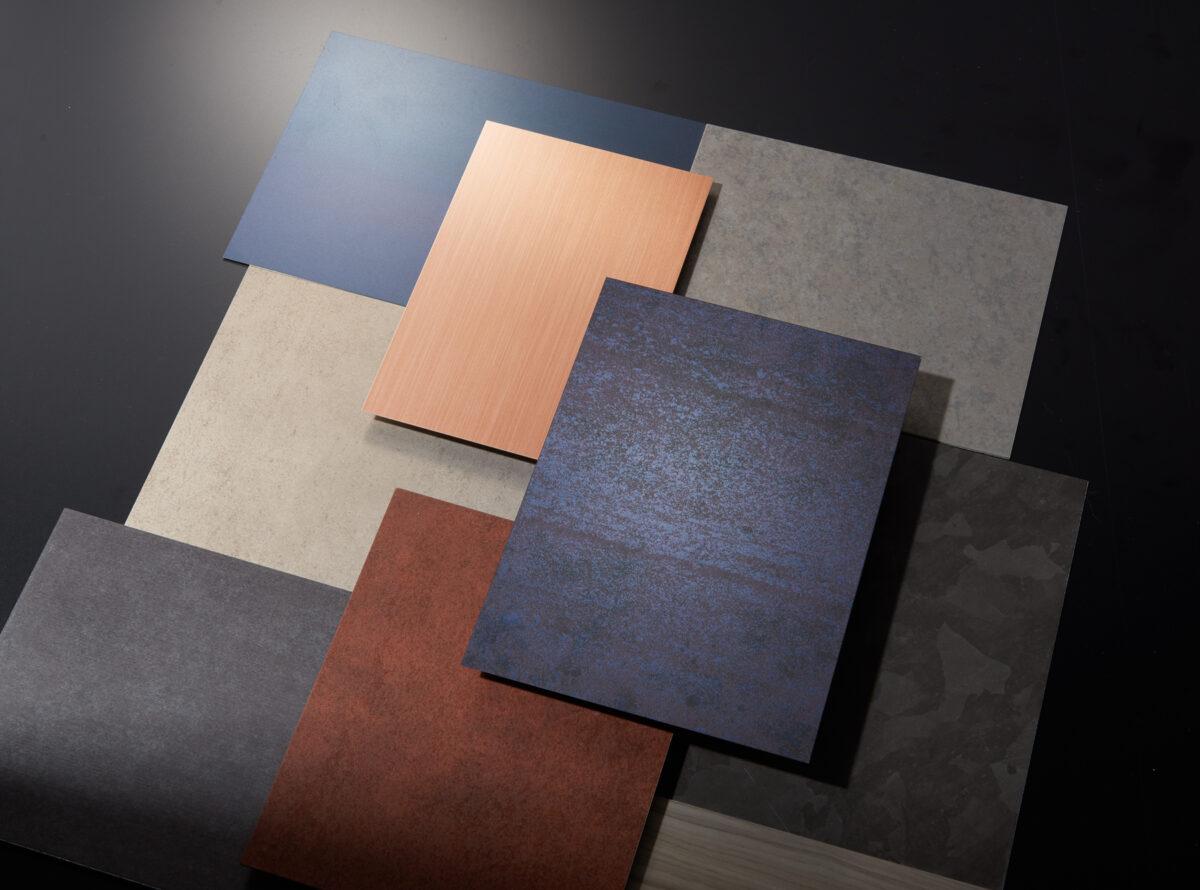 木目柄だけでなく、メタル調、石目調、リン酸処理風など、さまざまなデザインを提供しているので、設計者のこだわりに寄り添った仕上げを実現できます。