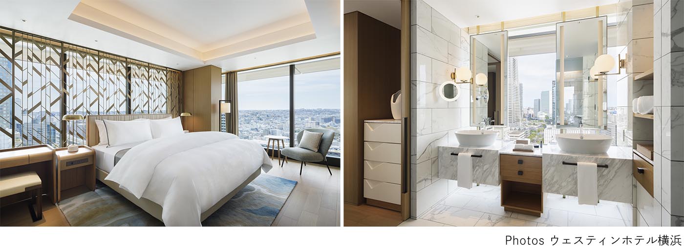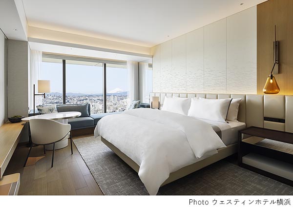 ウェスティンホテル横浜は全373室の客室を有しています。客室内は自然界で見られる形状を多く取り入れ、港町である横浜らしさを感じられるデザインになっています。