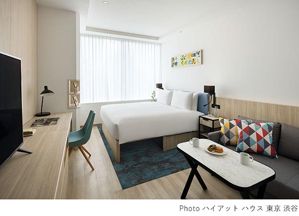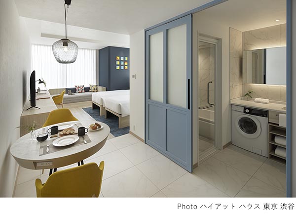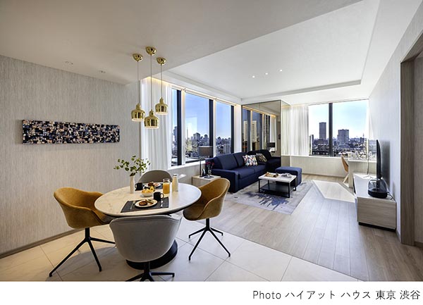 ハイアットのホテルブランド「ハイアット ハウス」の東京初進出となる「ハイアット ハウス 東京 渋谷」が2024年2月26日に開業しました。100年に⼀度とも⾔われる渋⾕駅中⼼地区の再開発プロジェクトにおける主要施設の⼀つ、「SHIBUYA SAKURA STAGE」内に位置し、客室はスイート18室を含む全125室を有しています。コンセプトは「暮らすように泊まる」。全室にキッチンや洗濯乾燥機といった家電などが完備されています。渋谷の多様性を表現した館内のインテリアデザインは株式会社GARDEが手掛けています。設計は戸田建設株式会社、施工は鹿島・戸田建設共同企業体が担当しています。