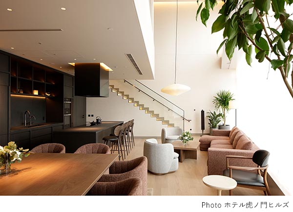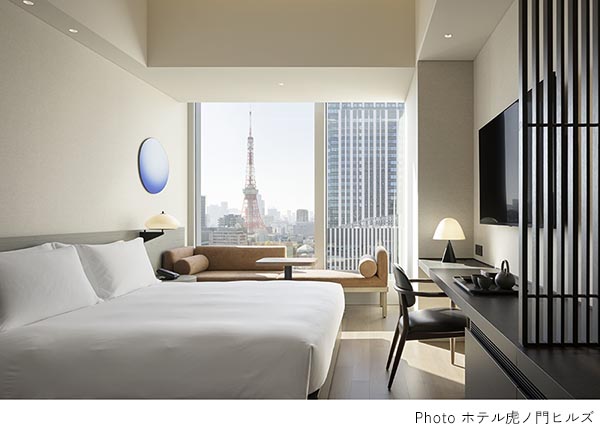 ハイアット ホテルズ コーポレーションは、ハイアットのインディペンデント・コレクション・ブランド「アンバウンド コレクション by Hyatt」の東京初進出として、2023年12月6日にホテル虎ノ門ヒルズを開業しました。日比谷線「虎ノ門ヒルズ」駅から直結し、日本のグローバルビジネスセンターに位置する絶好のロケーションです。全客室と料飲施設を含む、館内全てのインテリアデザインは、今回が日本における初プロジェクトとなるデンマークのデザイナーユニット「スペース・コペンハーゲン(Space Copenhagen)」が担当。「Slow Aesthetics(ゆったりと時が流れる美学)」と「Less is More(少ない方が豊か)」の融合をコンセプトにしています。設計は森ビル株式会社 一級建築士事務所、施工は鹿島建設株式会社が担当しています。