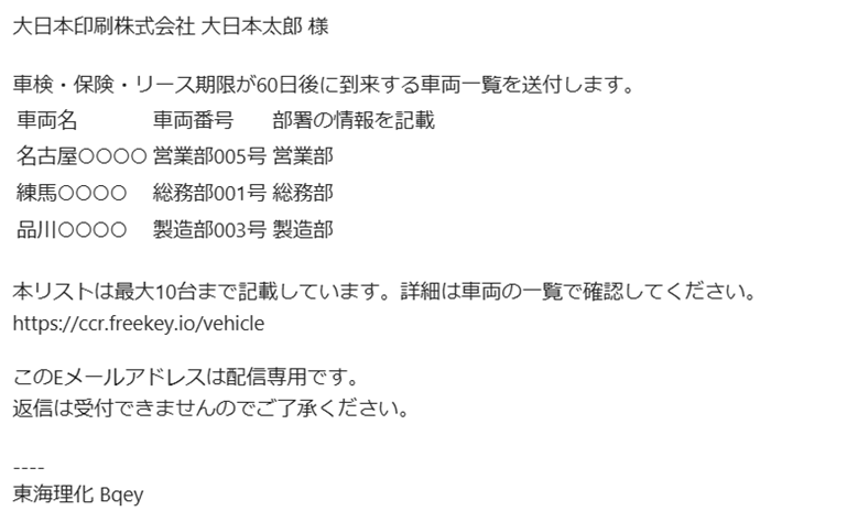 以下のように対象車両の情報が一覧で送られてくるため、ひと目で確認できるのがメリットです。