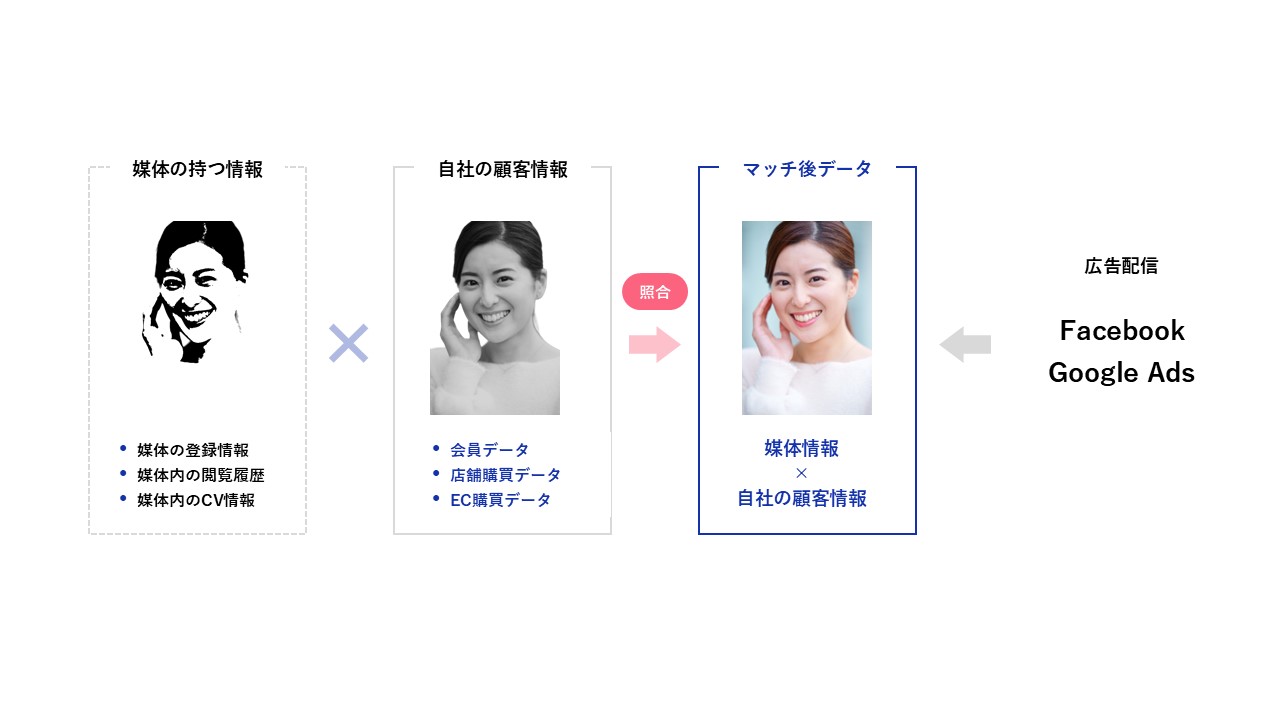 アドレッサブル広告は、媒体のデータと自社の顧客データを掛け合わせることで、高精度のオーディエンスに広告配信する手法です。