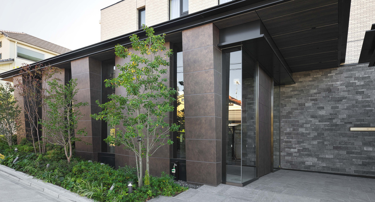 」も、「グランクレア昭和楽園町」同様に厳しい景観規制がある地域の建築物です。ここでも、外装にアートテックのコールテン調パネルが使用されており、歴史的な雰囲気との調和を図りながら、存在感のある外観を実現しています。
