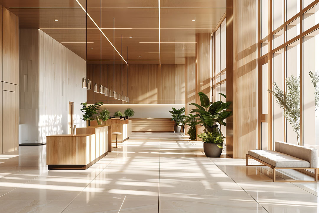 オフィスビルであれば、ウェイティングスペースのような空間を作り、ベンチや観葉植物、ウォーターサーバーなどを設置することで、来訪者が待機する間も居心地よく過ごせるような工夫が考えられます。