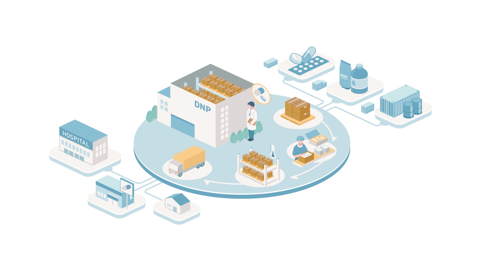 DNPでは、東日本・西日本の主要な物流センターで「医薬品卸売販売業」および「医薬品製造業(包装・表示・保管)」の許可を取得し、医薬品製品や医薬品原薬、中間製品の保管・物流・流通加工体制を整え、医薬品メーカー等からの業務を受託するBPO(Business Process Outsourcing:業務委託)サービスを強化しています。これにより、医薬品の保管・流通加工と販促物等の制作・セット作業を組み合わせ、効率的な物流を実現します。