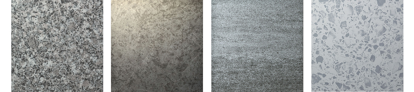 アートテックの石目柄は、大理石柄・玄昌石(げんしょうせき)柄をはじめ、コンブリアストーン・ジュライエロー・オニキスなど多様な柄を再現可能です。それぞれの石目の持つ風合いを活かして、さまざまな建物に採用されています。