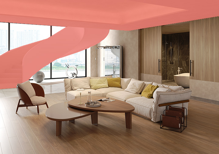 2025年のCalmは「Muted Herbal Living(穏やかなハーバルリビング)」をスタイルのテーマにしました。ホワイトベースにグリーンのカラーが映える、シンプルで穏やかな空間です。明るい木質カラーのコーディネートで空間を広く感じるとともに、素材のぬくもりも感じられるでしょう。Calmのペルソナについては、 こちら (新柄ラインナップ2025)をご覧ください。(國東)