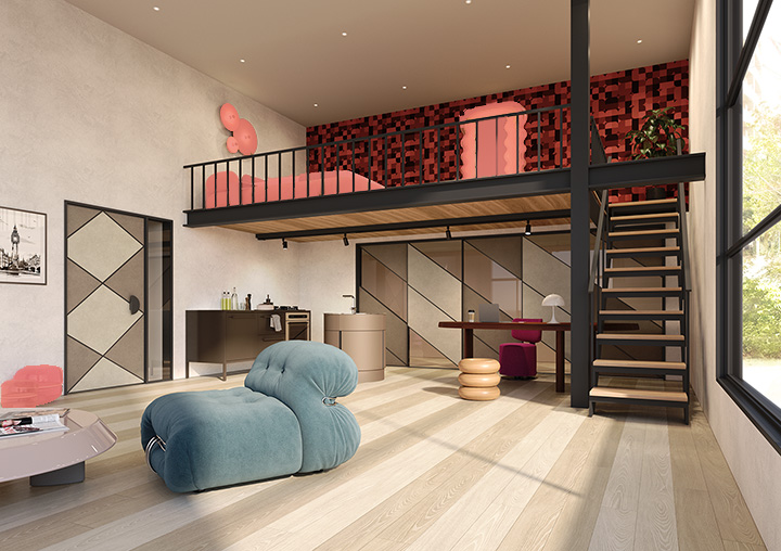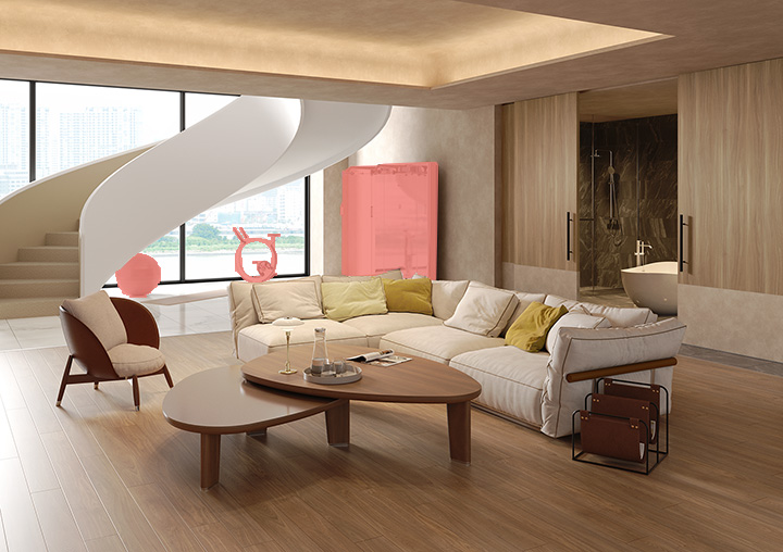 ミラノデザインウィークを中心とした海外のトレンドや、国内のマンション・商業施設・ホテルなどのトレンド情報を複合的に分析し、日本の住まいに応用した空間を考えています。まずは、どのようなライフスタイルのトレンドが存在し、そのような暮らしを好む人のペルソナを考えました。次に、そのペルソナが暮らしたいと思う理想的な住まいの空間を考えていきます。WS、EB-Fは主に新築分譲マンションにご採用いただくことが多いですので、5 Stylesの空間もマンションをイメージしつつ、WSとEB-Fのデザインがより魅力的に見えるように、現実的な空間よりもワンステップ上の夢のある空間を描いています。