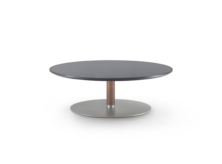 昨年初めてFlexformとコラボレーションしたFumie Shibataは、Eriシリーズとしてサイドテーブル(画像左)を発表しました。Eriサイドテーブルの天板は無垢材のほか、裏面を塗装したガラスと突板仕上げを組み合わせたバリエーションがあり、ベースはメタル製でマテリアルの質感の違いを楽しめるデザインです。同じくFumie Shibata デザインのダイニングテーブルENN(画像右)は日本語の「えん」から名付けられ、円や縁など様々な意味を有しています。円筒形のベースはレザーでつつまれていて、フロアとの接触部はメタル製で非常にエレガントな設えです。