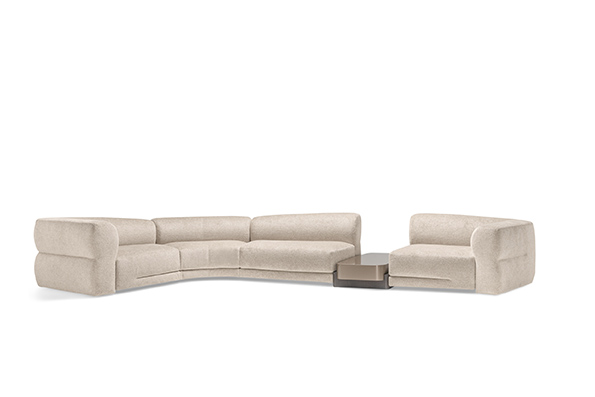 数々の賞を受賞したMiraiに引き続き、Andrea SteidlがデザインしたAmamaは、フェデリカンスタイルの建築を思わせる直線的ですが、やさしさも感じるエレガントなデザインです。ゆったり幅をとったアームレスとバックレストが特徴です。背面にはシェルフが組み込むことが可能で、さまざまな角度から多用途で使用できるデザインです。中央に設えられたセンターテーブルHABITAは、非常に機能的なデザインで、円形のユニットが可動し、収納スペースが出現するうえ、ベースに車輪がついているため動かしやすい製品となっています。いずれもリビングのマルチファンクションに対応するデザインでした。
